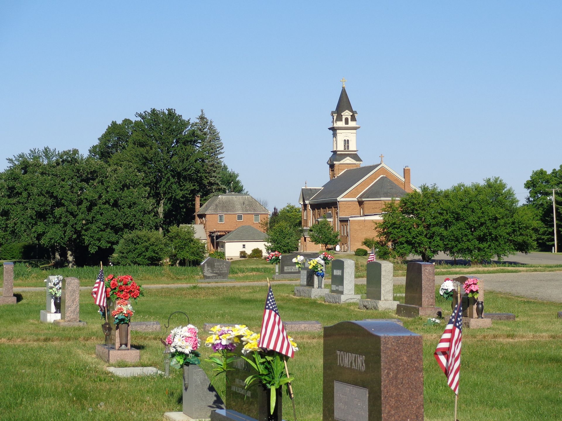 Located just behind the church, our parish maintains a beautiful and peaceful cemetery, complete with an outdoor altar. Mass is celebrated outside at the cemetery (outdoor altar) on Memorial Day, Labor Day, and the 4th of July, among other days as the weather permits. If you are in need of purchasing a burial plot or have any questions about the cemetery, please contact the office.